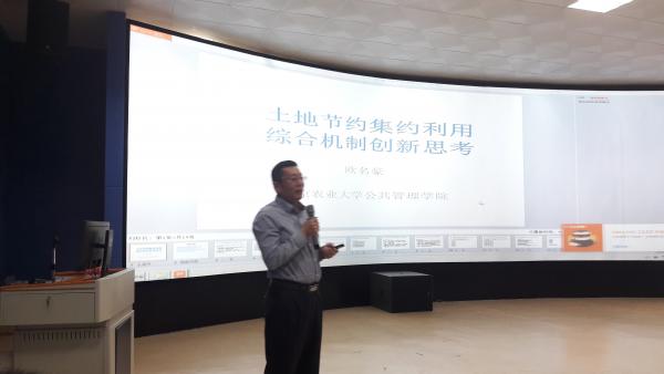 欧名豪教授作了“土地节约集约利用综合机制创新思考”的学术报告。欧教授认为,在我国现行耕地保护压力大、农地非农化道路不可持续、土地低效粗放利用、土地开发程度高等现实背景下,节约集约成为我国土地利用的必然选择。梳理了我国近年来在国家层面及地方层面的土地节约集约利用的实践探索,详细阐述了土地节约集约利用的核心关键是机制创新,并提出了对机制创新的若干问题思考。