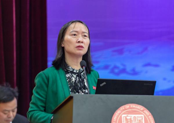 刘小丽致欢迎辞,她为在座的人员介绍了我校的整体概况,并与大家一同讨论新时代会计学院的发展问题与人工智能背景下会计专业如何寻找新发展方法的问题。