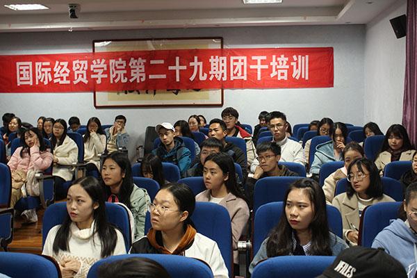 ​1115日下午,江西财经大学国际经贸学院在蛟桥校区老一教三楼西侧会议室召开了第二十九届第三期团干培训。本期培训邀请到国际经贸学院13级学生会主席同时也是18级研究生的龚明学长,为到场的学员作学习工作的分享交流。国际经贸学院分团委书记周妍老师出席了本次培训。