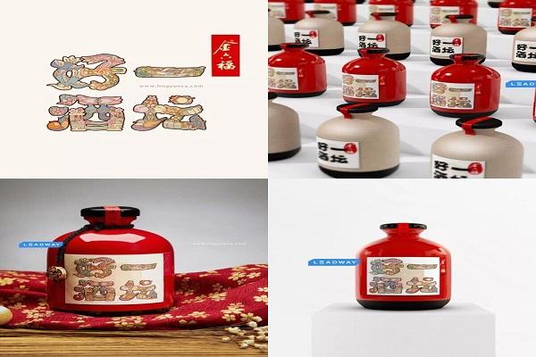 创作思路:中国是一个很喜欢红色的国家,例如结婚或者生日,运用红色似乎都成为了一种铁律一般,许多产品自然也就和红色有了联系,白酒就是其中最明显的一类。但是时间久了,这类产品的视觉同质化现象也就十分严重,如何让产品摆脱这一现象,就变得尤为的重要起来。这款产品名为“一坛好酒·喜坛”,名称的设定也将产品的属性进行了明确的概括,同时,企业方也要求这款产品要与常规款的一坛好酒保持较强的联系性,以确保品牌传播整体感。针对于这一情况,我们先是尽量保持容器外形上的近似度,再将主要精力投入在了瓶标的设计上。我们将名称的四个汉字进行了重新编排,采用一系列有着美好寓意的图形组合构成原有字体,让消费者易于识别产品名称的同时,还会被其中丰富精致有趣的图形所吸引,从而深刻的记住这一款产品,使得产品能够在同类型产品中脱颖而出。