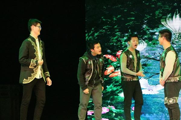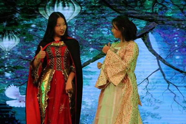 伴随着欢快的音乐,一场精彩的话剧正在上演。话剧内容是我们耳熟能详的《白雪公主》,话剧中,恶毒的皇后依旧执着于询问魔镜自己美不美,但魔镜已然升级换代,融入了人工智能的元素。小矮人依旧可爱,他们通过红歌与白雪公主对暗号。白雪公主依旧善良,遇到摔倒的老奶奶便毫不犹豫地前去搀扶,丝毫不为“扶不扶”而犹豫。在王子允诺她一个愿望时,她却许愿希望皇后可以变得美丽一些。这是多么地无私啊!这是多么地高尚啊!而白马王子依旧高大帅气,而且还拥有了强大的魔法,让故事变得更加梦幻。精彩的话剧幽默风趣,融入了些许现代元素,赢得了观众席的连连叫好!