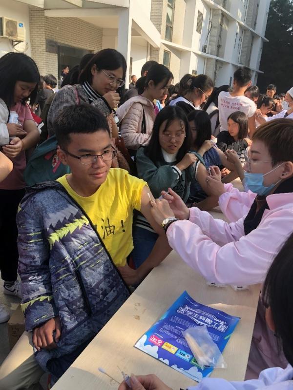 11月27日中午,校医院在麦庐园校区组织2018级新生完成了乙肝疫苗首针的接种工作。