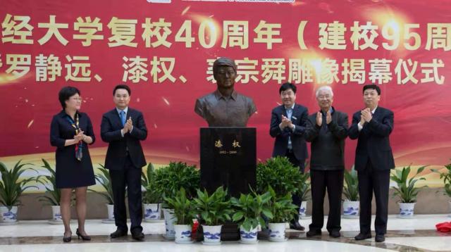 2018年10月28日,刚踏进校门不久的我有幸参加了江财95周年校庆活动。作为活动的重要内容之一,江财还举办了三位已故老领导的铜像落成揭幕典礼,缅怀三位先生各自不平凡的一生,铭记他们为江财所做出的贡献。“漆权”这个名字引起了我的好奇,他是一个什么样的人?有着怎样的一个人生?英年早逝的他怎么能获得如此高的荣誉?让我不禁想走近他,去了解雕像后面的故事。“才高八斗,为人忠厚,兢兢业业,政绩卓然”这是很多人脑海中对漆书记的印象标签。作为漆书记的学生,会计学院88级会计1班余东文校友的记忆则更为细致写实:“漆书记相貌堂堂,笑起来有一个小酒窝,眼睛里露出一种孩子般的真诚,说话轻声细语,听者如沐春风,而他严肃起来却不怒而威。他常教导学生会干部:学做人、学做事、学做学问。”然而,在2009年,这样一位谦谦长者,却在其57岁因病早逝,一位学长抱着无比痛惜的心情向茫然的我讲述着漆书记的往事。惋惜之余,我想到了这位学长在当年听到他的学长对他讲述漆书记的点滴时,和我们现在的心境是差不多吧?届届相传,口口相传,漆书记原来一直不曾远去,尽管他离开了近十年,但他的音容笑貌仍旧浮现在江财师生们的眼前。他的慎独慎微、自强不息、艰苦奋斗的精神仍然激励着一代又一代的江财学子们,跨越时空,薪火相传。