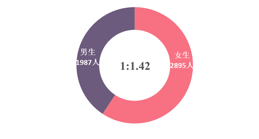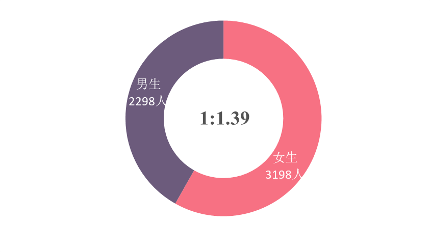 2018届普通本科毕业生共5496名,其中男生2298名,女生3198名,男女比率约为1:1.39,女生比率比2017届略有降低。
