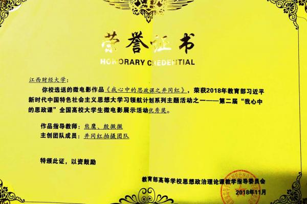 为积极响应“高校思想政治理论课教学质量年专项工作”的开展,加强校园精神文明建设,我校人文学院参加了2018年教育部习近平新时代中国特色社会主义思想大学习领航计划系列主题活动之“我心中的思政课”——全国高校学生微电影展示活动,本次参赛作品《我心中的思政课之井冈行》荣获“优秀奖”。