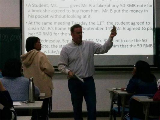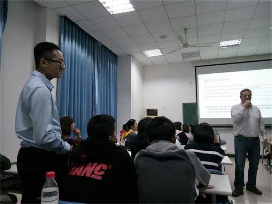 为提高学生英语口语,营造英语流利说的良好氛围,418,法学院学生会学部于法体楼举办英语角活动。外教Mr.B担任此次英语角活动的主讲。法学182班全体学生积极参与。