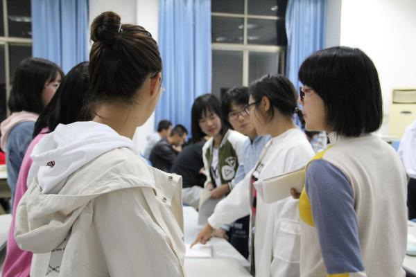 接下来的发言环节将活动推向高潮。为了抓住与外教交流的机会,同学们踊跃来到外教身边,与外教谈论自己的看法。在相互交流时,明春兰同学谈到:“在选课时网速跟不上是一件很头疼的事情,当别人网速快时,自己心仪的课程可能就要被抢走了。”伍芳琳同学以自己的经历为例讲述了学校强制穿校服给她带来的难忘经历。邓瑾哲同学针对学校制定的‘我来上课’签到程序存在的缺陷,分析并逐一列举了其不合理的理由。总之,同学们都各自表达了自己的观点。教室中洋溢着同学们在思维碰撞、吐露心声之时的热情与欢笑。