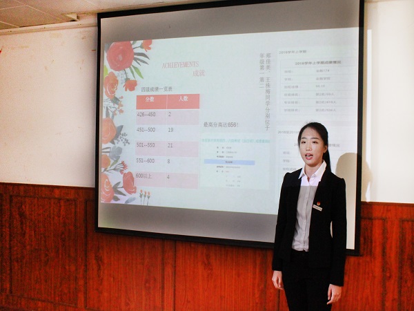 最后由金融学院党委副书记郭海峰老师发言,他讲到很高兴看到这些优秀干部们可以站在这个平台上展现自己,更提到班支应督促同学积极学习,管理好班级内务各方面事宜,协助广大青年过好大学生活,希望各位代表可以不断反思自我不足,得到更好的成长与蜕变。