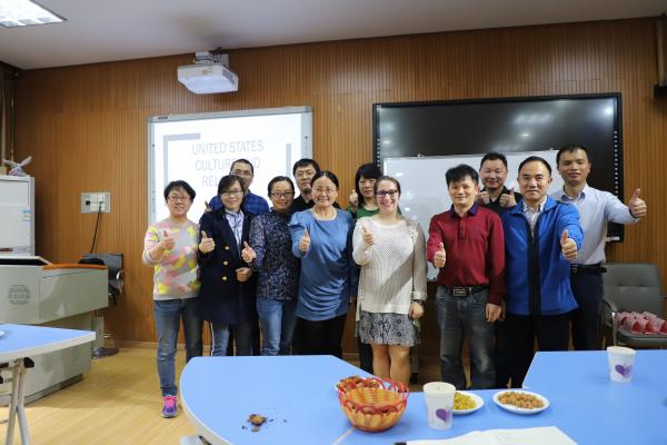 最后,现场老师就教育等方面的疑惑进行提问,NaomiFanelli进行耐心细致的解答。老师们纷纷表示通过今天的交流学习,在感受美国文化的同时收获颇丰,NaomiFanelli也希望本次分享对老师们有所帮助。至此,本次活动在一片欢声笑语中画下句点。(文/教师教学发展中心 姜锐 黄锡琦 编辑/钱子健)