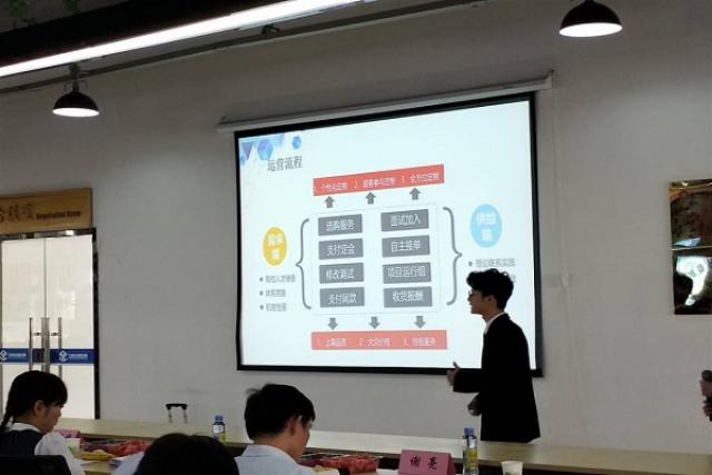 “知识共享”、“村村通物流”、“创意甜品店”,参赛选手们自信从容的讲解着团队的参赛作品,将团队参赛的作品创意与想法完整的呈现出来,团队中每个成员的任务划分清楚。“要学会发掘需求痛点,寻找供需方之间的关系”、“仅仅有一个策划远远不够,只有真正落地的项目才算真正运行”,评委们对各个项目都提出了中肯的建议,选手们认真思考评委老师们的相关提问,依据对相关知识的了解与掌握,再进一步融合选手自身的理解,让现场的评委老师们频频点头。