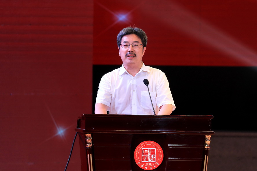 王乔在致辞中表达了对与会领导、来宾、评委、指导老师及江财青年志愿者的感谢,对获奖队伍表示了祝贺。王乔指出,本届“挑战杯”从参赛规模和作品质量上均有新的突破,涉及学科更多,覆盖领域更广,参赛作品含金量更高。学校的组织工作也有更多的创新,如优化了比赛流程,引入了全新的信息化赛事平台,开创了赛事组织工作的新思路等。最后,他希望,赣鄱学子将奋斗作为青春最亮丽的底色,让“挑战杯”成为前进的最好舞台。希望大家坚守初心使命,保持创新创业激情,在燃烧的青春中勇攀高峰、再创辉煌。