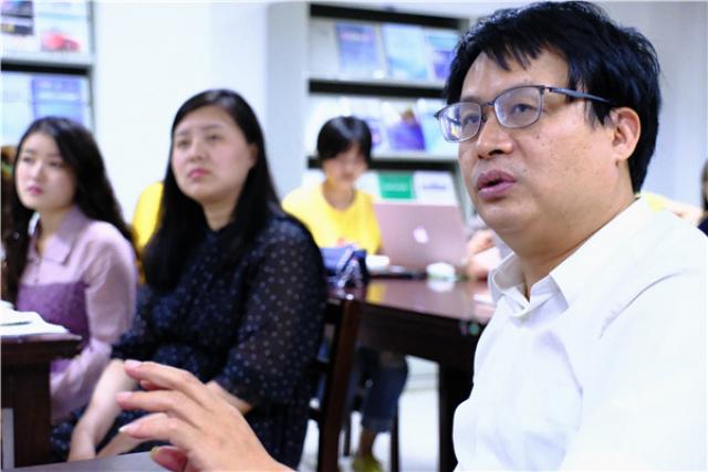 5月17日晚,人文学院院长尹忠海教授主办的雅悦人文讲坛·兴悦读书报告会于图书馆5楼M504举办,马骏、龚星两位同学担任主持人,汪仕友、刘颖瑜两位同学主讲。会上,人文学院部分本科生、研究生荟萃一堂,在尹忠海教授的指导下,进行一场思想交流与观点碰撞的盛会。
