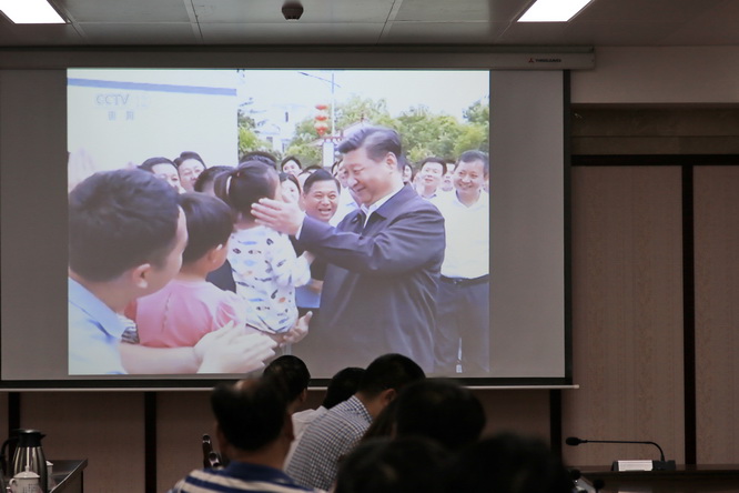 蒋金法在讲话中强调,习近平总书记时隔三年再次亲临江西视察指导,彰显了总书记对江西人民的赤子情怀、赤诚大爱,彰显了党中央推动革命老区发展、让老区人民过上更加幸福生活的坚定决心,给全省广大干部群众以亲切关怀、巨大鼓舞。蒋金法指出,总书记十分重视江西,关怀江西,关爱江西,学习习近平总书记重要讲话精神更是所有江财人的一份义不容辞的、沉甸甸的责任。全校上下要把思想和行动统一到习近平总书记重要讲话精神上来,统一到中央和省委重大决策部署上来,按照省委统一部署,迅速掀起学习贯彻习近平总书记重要讲话精神的热潮。