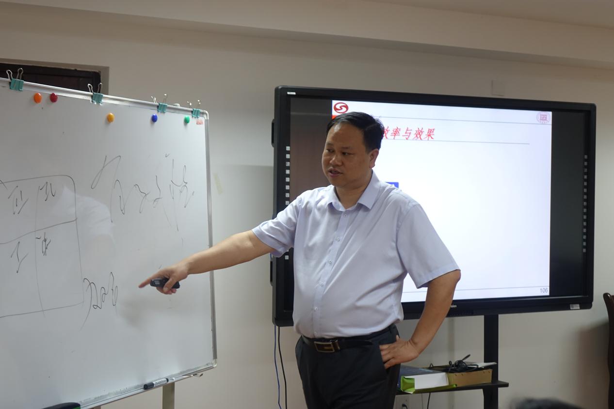 课上,胡教授就管理理论有哪些、如何进行有效管理、怎样管理有道等问题跟同学们进行了深入的探讨,同时提出管理四大图:即管理天平图、管理三叶片图、管理坐标图、管理阶段图,从多个维度向同学们剖析管理理论。胡教授认为,关于管理,规范化是基础,标准化是核心,数据化是方法,信息化是载体;管理之道应该85%是例行管理,10%是责任管理,5%才是例外管理,靠经验、感觉和艺术管理。胡教授的课程极具特色,运用案例分析、图表分析和管理测试、视频讲解等方式,配合其风趣幽默的语言把理论知识生动形象的分享给同学们,使得理论知识变得浅显易懂。