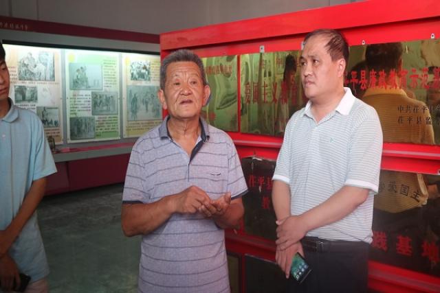 在参观过程中,志愿队的同学们认真倾听纪念馆老书记林东华的介绍:1927年大革命失败后,革命暂时处于低潮,全国陷于白色恐怖之中。党号召人民继续同国民党反动派进行斗争,在山东省委负责人王寅生的主持下,(博)平县历史上的第一个共产党支部就此成立,它在茌平县乃至整个鲁西地区具有非常重要的作用。之后,林东华老书记向大家讲述了袁楼村村民参加坡里暴动、开展隐蔽斗争、农民志愿前线、袁楼儿女等红色革命故事。最后,他对在解放斗争时期那种困难背景下,袁楼村革命先辈对解放人类的抱负、追求及不屈的精神给予高度赞扬。他表示祖国未来寄托在青年人身上,青年人富有朝气,应当继承、发扬经典文化,并学好文化知识,传承红色文化,规划道德行为。