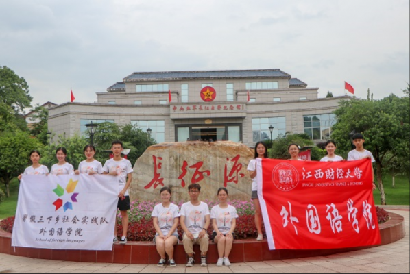 7月9日,江西财经大学外国语学院暑期三下乡队伍在赣州市于都县中央红军长征出发地纪念园开展以“弘扬红色文化,歌颂长征精神”为主题的红歌翻唱活动。