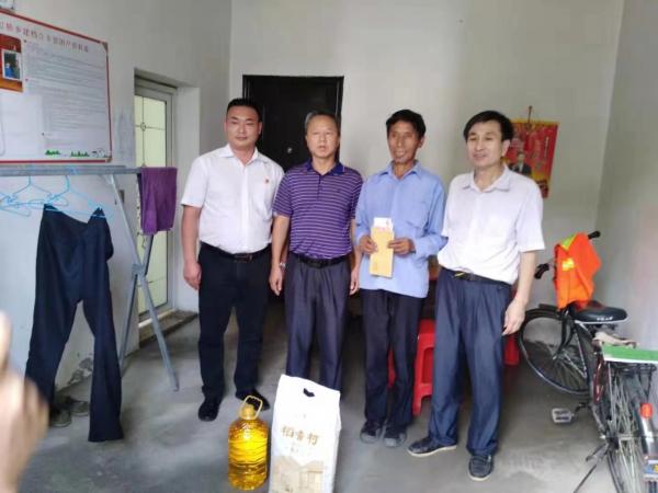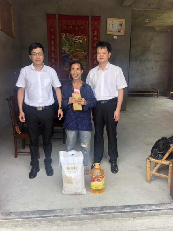 11日上午工会主席黄泽友、副主席吴太福,离退休人员工作处处长刘仁彪在驻村第一书记匡仁相、驻村队员范红军、村主任黄和平陪同下,分别走访慰问帮扶对象熊海龙、谢金生,为他们送去优质大米、食用油和慰问金。