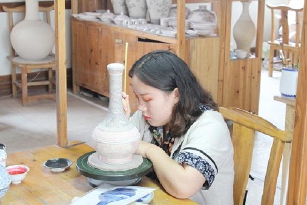 志愿者们还了解到,皇窑景区内聘请了几位非物质文化遗产传承人进行瓷器制作展示。通过对他们的一些询问与现场和景区介绍人的一些综合情况的了解,志愿者们得出的结论是,得益于近几年国家对非物质文化遗产的保护的力度加大,景德镇的非物质文化遗产进入到一个传承延续的新时代,越来越多的年轻人融入到这个过程中,为行业注入了新鲜血液。这为行业带来的不仅是在制瓷业上的重续传承,更在其基础上,融入现代元素,对此进行了突破,创作出风格偏向细腻和现代化的新瓷器。