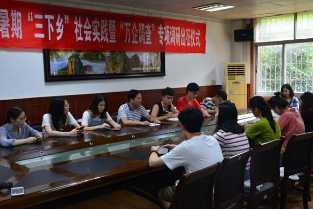 7月15日下午,金融学院2019年暑期“三下乡”社会实践暨“万企调查”专项调研出征仪式在蛟桥园翼轸楼会议室举行。金融学院党委副书记郭海峰出席。学院暑期社会实践团队成员代表参加出征仪式。