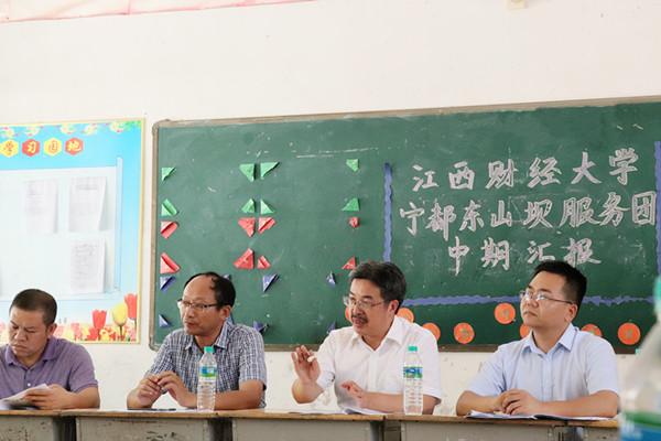 7月18日上午,校党委副书记蒋金法前往赣州市宁都县东山坝镇看望我校暑期“三下乡”宁都服务团成员,并听取宁都服务团中期成果汇报。校团委书记夏贤锋主持中期汇报会。