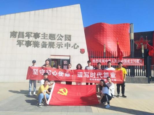 9月22日上午,学生第二党支部和第三党支部党员赴南昌军事主题公园参观学习。在园区微课堂里,二支部郭芳玲同志讲授了以“不忘初心、牢记使命”为主题的党课。通过重温党的历史,感悟家国变化,加深对党的初心与使命的理解;通过积极讨论“初心和使命”问题环节,促人反省,令人深思。学生第二党支部书记刘丽芳老师强调,作为共产党员应该积极向优秀的党员同志学习,学习张富清、王伟等人不怕困难,不怕牺牲,勇于奉献的精神。同时,刘丽芳老师讲到,作为学生党员要时刻牢记自己的政治身份,将政治身份放在首位,严于律己,在学习和生活上起到先锋模范作用。活动过程中,全体党员重温了入党誓词。