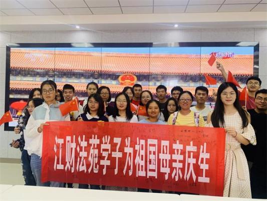 除了十一阅兵仪式观看活动,法学院还举办了丰富多彩的线上祝福活动。江财法苑分团委公众号于9月30日推出“70年国庆,你们准备好了吗?”推送留言活动,法苑学子纷纷留言,为祖国献上暖心的祝福。来自18级的雷婧祺同学留言道:七十年前的一眼四海八荒捉襟见肘;七十年后的一眼九州大地蒸蒸日上。我们愿以今朝风华正茂铸你明日万里锦绣河山!祝福祖国繁荣昌盛,国泰民安!