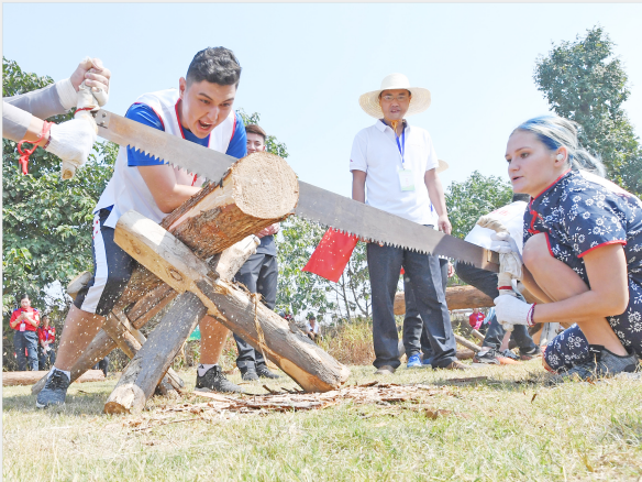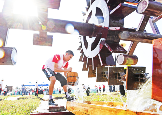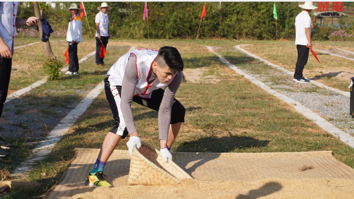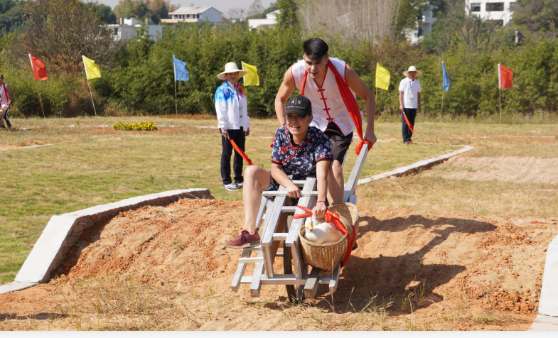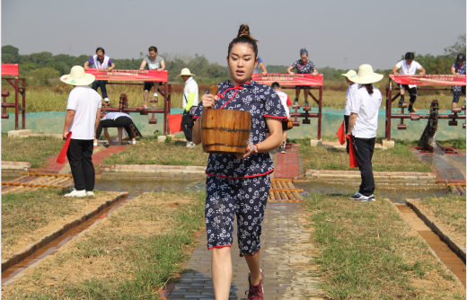 其中,同心锯木项目难度系数最高,我校运动员在现场认真学习和观摩其他参赛队伍的比赛,迅速掌握动作要领;鱼塘抓鱼项目最辛苦,运动员们在鱼塘里摔倒了无数次,满脸满身全是泥浆,浑身湿透,但依旧不放弃抓鱼的任务。