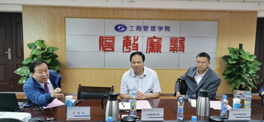 为共谋商科学院发展之计、推动其整体发展,10月22日下午,由江西省管理学会主办,工商管理学院承办的江西省高校经管学院院长学科升级与国际认证专题研讨会在江西财经大学麦庐园北区英孚大楼503召开。本次会议邀请浙江大学资深教授王重鸣担任主讲嘉宾,南昌大学、江西师范大学等江西省管理学会10余位管理学科学院院长参与此次研讨,会议由江西财经大学工商管理学院胡海波院长主持。