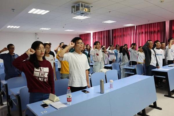 “流逝年华无法还,长存只有爱国心。”18级工商管理5班和19级工商管理6班通过誓词的表达方式,宣誓着自己的爱国之心。教室光明敞亮,同学们站姿笔挺,高举右臂,手握成拳,庄严宣读誓词:“我自愿加入中国共产主义青年团,坚决拥护中国共产党的领导……”。坚持爱国,爱党,爱社会主义,是爱国主义最本质的体现。谆谆誓言,令同学们心潮澎湃。正处于大发展大变革时期的青年学子们,应高擎中国特色社会主义伟大旗帜,把握住新世纪的航舵,开拓更进一步的辉煌