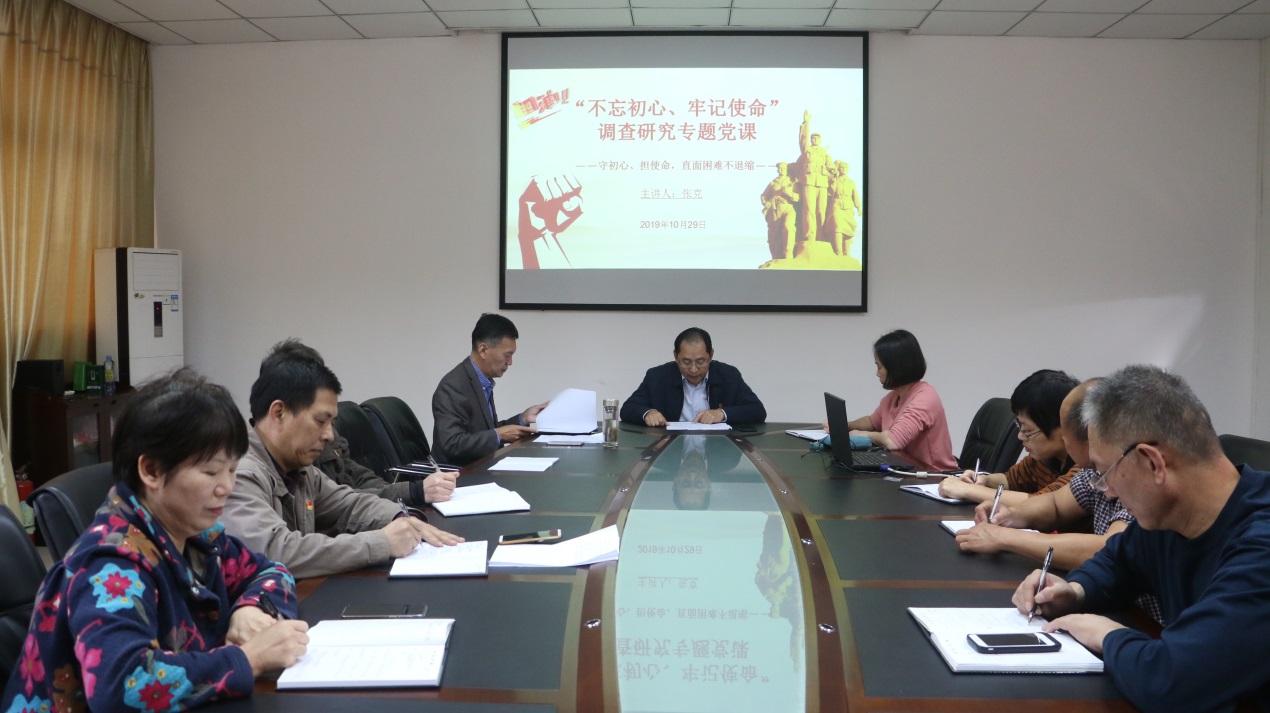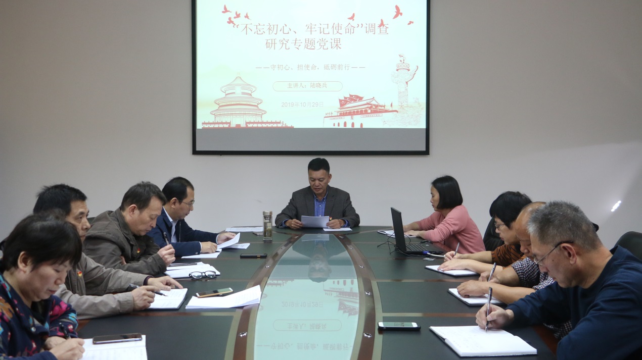 10月29日下午,资产管理处开展“不忘初心、牢记使命”调查研究专题党课。处领导班子成员就近期调查研究成果结合主题教育学习体会上党课,我处全体党员参加。
