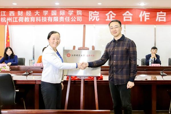 国际学院党委书记涂艳和江荷教育创始人兼CEO戴超亮共同为国际学院就业实训基地揭牌,杭州江荷教育科技有限责任公司正式成为国际学院就业实训基地,依托其优质的CFA师资队伍、自主研发的CFA学习管理系统和CFA学习多媒体数据库为学生提供专业课程测试、CFA一级模拟考、智能学情分析等在线平台支持。国际学院每年选派学生赴江荷教育实习,由公司提供专业指导,并提供优先录用机会。