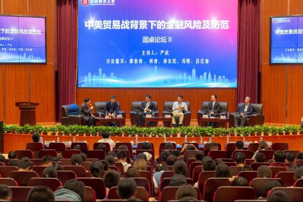 随后,我校金融学院严武教授主持圆桌论坛II环节。中国人民大学财政金融学院副院长谭松涛教授、中国人民大学财政金融学院何青教授、中南财经政法大学文澜特聘教授孔东民、中国社科院财经战略研究院综合经济研究部副主任、副研究员冯明、我校金融学院吕江林教授五位学者围绕“中美贸易战背景下的金融风险及防范”的话题进行了多角度的论述,谭松涛教授指出基于全球化背景下中美之间的冲突以及应对策略。何青教授指出基于中美贸易战背景下的人民币国际化以及金融风险与防范。孔东民教授指出中美贸易战背景下的金融风险分为跨境资本流动风险、对外投资风险对国内企业与金融体系的冲击风险、出口下降而引发的信贷风险、局部金融风险扩散引发的全系统金融风险传染四方面,中美贸易战将迫使中国快速全面开放金融体系,以及促进美国致力于布局新的货币体系。冯明副研究员以信用收缩风险与货币创造机制转型为主题展开了讨论,他指出“外汇占款渠道”将收缩、“再贷款渠道”将扩张,基于转型期间我们将面临流动性淤积、货币政策传导不畅、货币创造效率下降、宏观调控不灵活等挑战。我们需要增强银行等金融机构主动识别效率、进行风险定价和风险控制的能力。建立国内信用为主、政府信用为主导的基础货币创造,从系统性上降低实体经济融资成本。吕江林教授以我国三大需求对GDP增长率的贡献与拉动来分析中美贸易战的影响,他指出中美贸易战叠加经济下行背景下我国须防范宏观杠杆率反弹