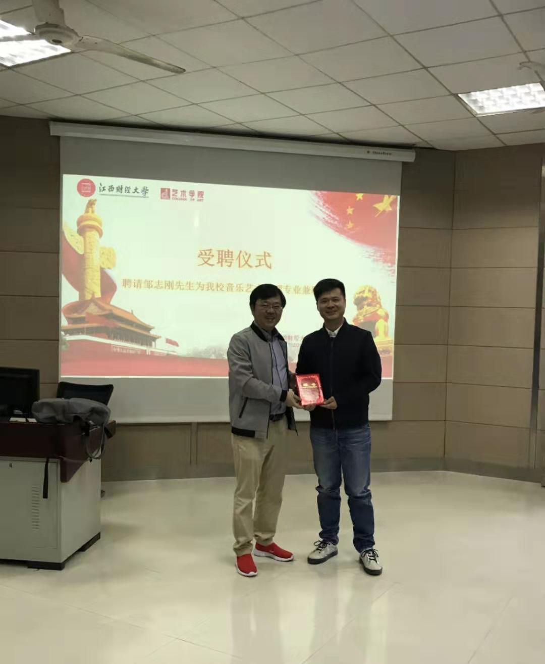 会议开始,艺术学院李民院长为邹志刚先生颁发了我校音乐艺术管理专业兼职硕导的聘书。