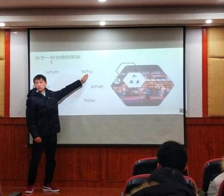 在前期签到工作完成后,全体学员有序入座,上午9:00,技能培训活动正式开始。在对付平学长和王萍学姐做了简单的介绍后,首先由王萍学姐向学员们教授PPT制作技巧。学姐将制作技巧放入简单的范例中,用生动传神的的方式让大家熟悉PPT制作的方式和技巧。在讲解的最后,学姐向大家推荐了一些实用的PPT制作素材网站,让大家制作PPT时能更加方便高效。王萍学姐技能分享结束,大家中途休息了五分钟后,便由付平学长给大家传授策划案编写的技能。付平学长将策划书编写分成了各个环节,着重强调了在策划案编写中需要注意的地方,并用几个例子解答了学员们提出的相关问题,使大家对于策划书的编写有了更深的认识。技能培训期间,付平学长和王萍学姐都讲授的非常细致全面,学员们听得也极为认真,大家积极互动,气氛十分热烈。两个小时的技能分享很快就到达了尾声,伴随着热烈的掌声,本次技能培训活动于11:00圆满结束。