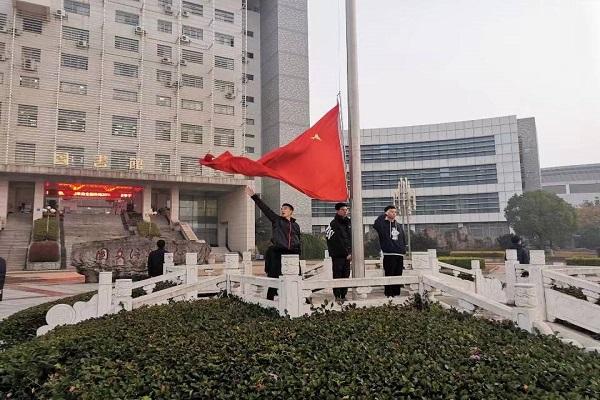 江西财经大学升旗仪式在学校至善广场前举行,即使凛冽的瑟瑟冬风不断呼啸撕扯,各学院的同学们也仍然按照安排地时间准时出席并排好队,迎接升旗仪式的到来。