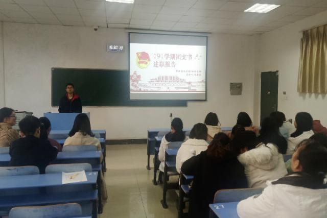 为对2019-2020学年第一学期内班级工作进行总结汇报,并对第二学期工作进行展望,商英181班于12月11日下午4时30分在2104教室举行了团支书述职活动,全班同学积极参与此次活动,活动由班长沈欢进行主持。