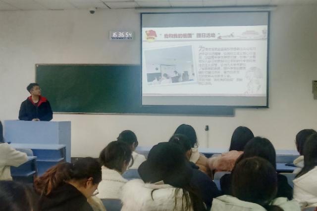 紧接着,许晨康又借助PPT进行简单的图片展示以及文字描述,一次次意义非凡的主题班会活动仿佛再次浮现于脑海之中。班级团圆饭、“我和我的祖国”团日活动、“校园贷”主题教育、入党积极分子竞&选预备党员评议、垃圾分类主题班会等,在联系整个支部的成员,共同提升支部的各方面素养,特别是在政治方面,提升同学们的爱国情怀,理论修养。此次活动以团支书寄语圆满落下帷幕。