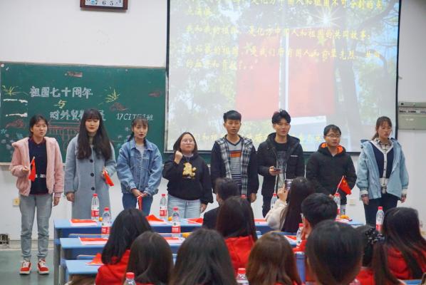 为献礼新中国成立七十周年,同时引导同学们将专业知识与国家发展实际相结合,增强班级凝聚力,12月11日下午,国际学院CITF171班“祖国七十周年与对外贸易的发展”精品班会在蛟桥1203教室举行。国际学院党委书记涂艳、党委副书记王明华、CITF171班班主任徐丰老师作为嘉宾莅临现场,与同学们共同参与到精品班会之中。此外,参加本次精品班会的还有各兄弟班级的学生代表。