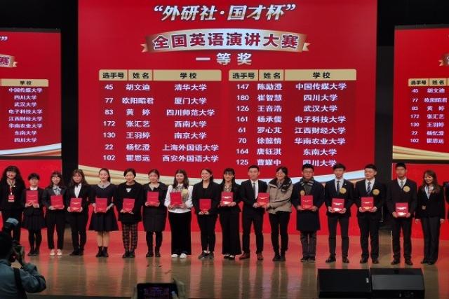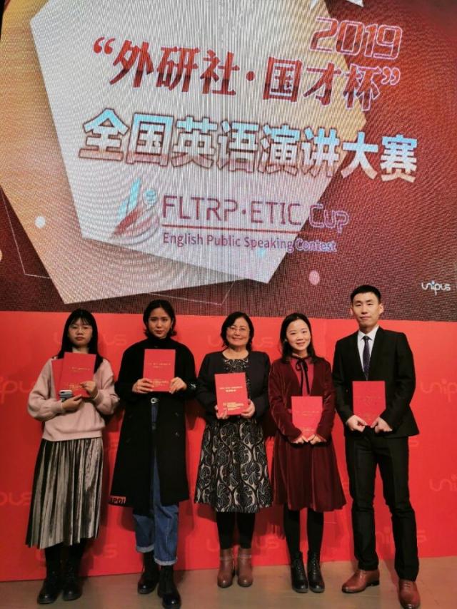12月13日,“外研社·国才杯”全国英语大赛颁奖典礼于北京外研社国际会议中心千人礼堂隆重举行。在2019“外研社·国才杯”全国英语总决赛中,由全国31个省、市、自治区、澳门特别行政区及多国在华留学生组成的182名选手相聚演讲决赛现场,我校罗心芃经过三轮激烈比拼夺得演讲比赛一等奖、双雅楠荣获演讲比赛三等奖、谭悦荣获写作比赛三等奖、王蕾荣获阅读比赛三等奖。