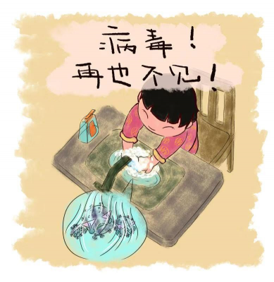 粑粑嫲嫲,我每天洗好几遍手,不让病毒坏蛋剌伤我。