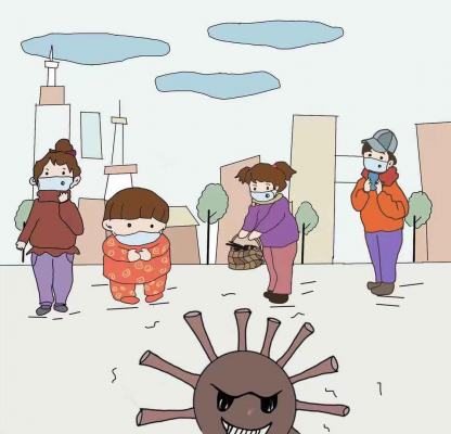 出门时,我把口罩戴的好好的,不给病毒坏蛋一点机会。
