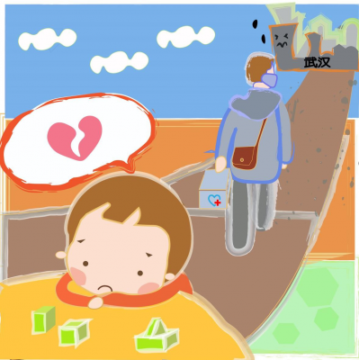你还太小,打不赢病毒的。乖,你就呆在家里玩积木吧。