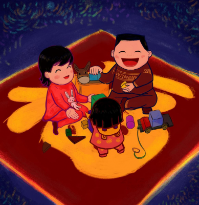 他们都是医生,很少在家里陪我。要过年啦,我好开心哦。