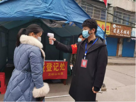 财税与公共管理学院2019级财政社保班班长刘晓祥同学,作为一名学生党员,毫不犹豫地参与了山西省大同市平城区新华北街社区志愿服务工作,为社区居民测量体温、检查居民通行证件、张贴通知告示、挨家挨户排查信息,这些看似简单的工作在肆虐的疫情面前显得尤为重要。体温枪、登记簿成了他的战“疫”武器。北方的二月依旧是天寒地冻,但他始终都坚守在自己的岗位上,和社区工作人员一起守好防线、护好安康。