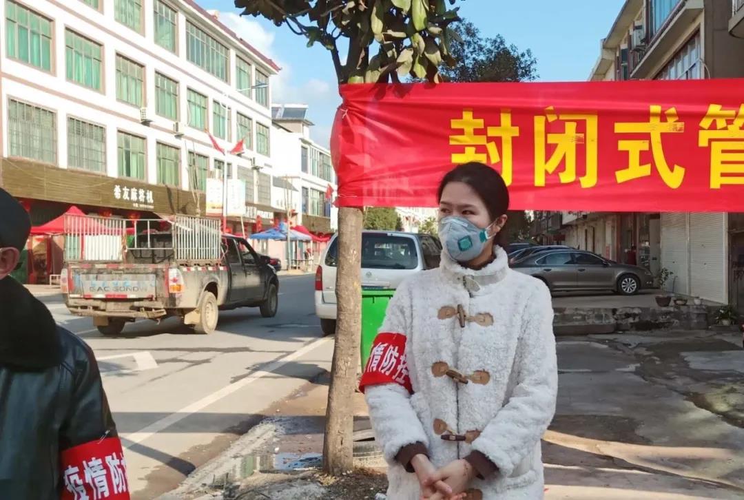 法学院经济法2018级硕士研究生杨娟娟同学,在江西省九江市湖口县城山镇竹庄村主动参加党员志愿者工作,严格对进出本村人员进行身份认证和登记,还负责村内进出人员的消毒工作。