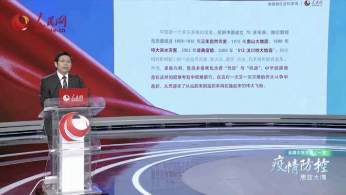 为将高校思政课教学优势转化为防疫斗争的强大力量,教育部社会科学司、人民网联合举办“全国大学生同上一堂疫情防控思政大课”。国贸人也在用行动诠释“同舟共济,共抗疫情”的责任担当。3月9日下午,国际经贸学院组织全体同学通过人民网教育频道、人民智云客户端、咪咕视频等客户端与全国高校学生一起同步收看直播。