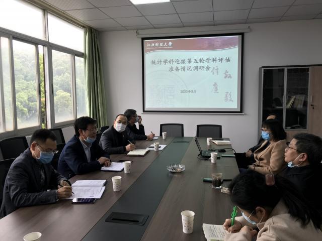 3月23日上午,副校长袁红林到统计学院就统计学学科第五轮学科评估准备工作进行专题调研。研究生院院长罗世华、副院长陶春海随同调研。