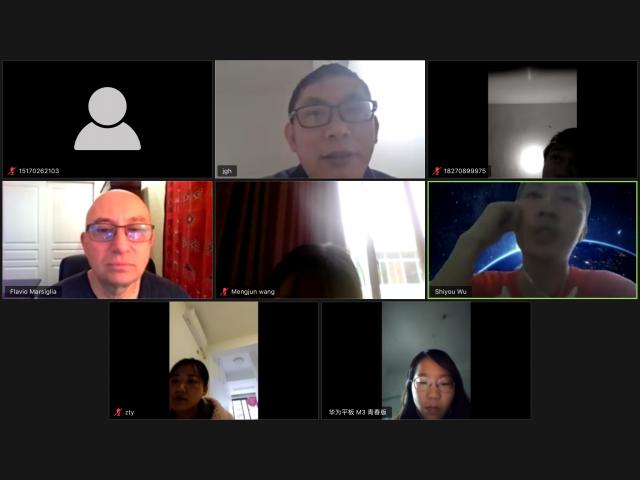会议第一个主题主要探讨了当前两国疫情的情况,并对疫情进展进行了分析,同时FlavioMarsiglia教授和吴世友教授对学院师生们的身体情况表示了关心和问候,蒋国河教授表示,目前我国疫情状况控制的良好,全体师生们身体状况良好,并对FlavioMarsiglia教授和吴世友教授表示了问候并致以诚挚的谢意。