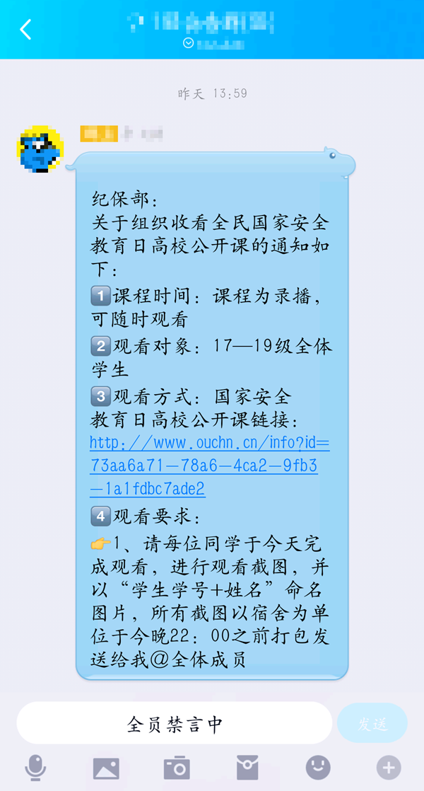 2020年4月15日是第五个全民国家安全教育日。为进一步提升青年大学生的国家安全意识,培养和增强自觉投身国家安全的责任感与使命感,工商管理学院学生会纪保部于4月14日组织工商学院17—19级全体学生收看全民国家安全教育日高校公开课。工商学子积极观看公开课,深入思考国家安全问题。