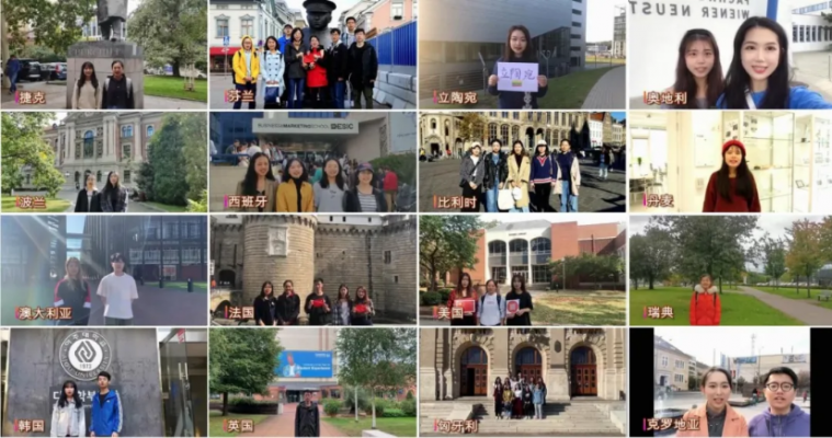 (图为江财海外学子为新中国70华诞祝福视频截取页面拼图)